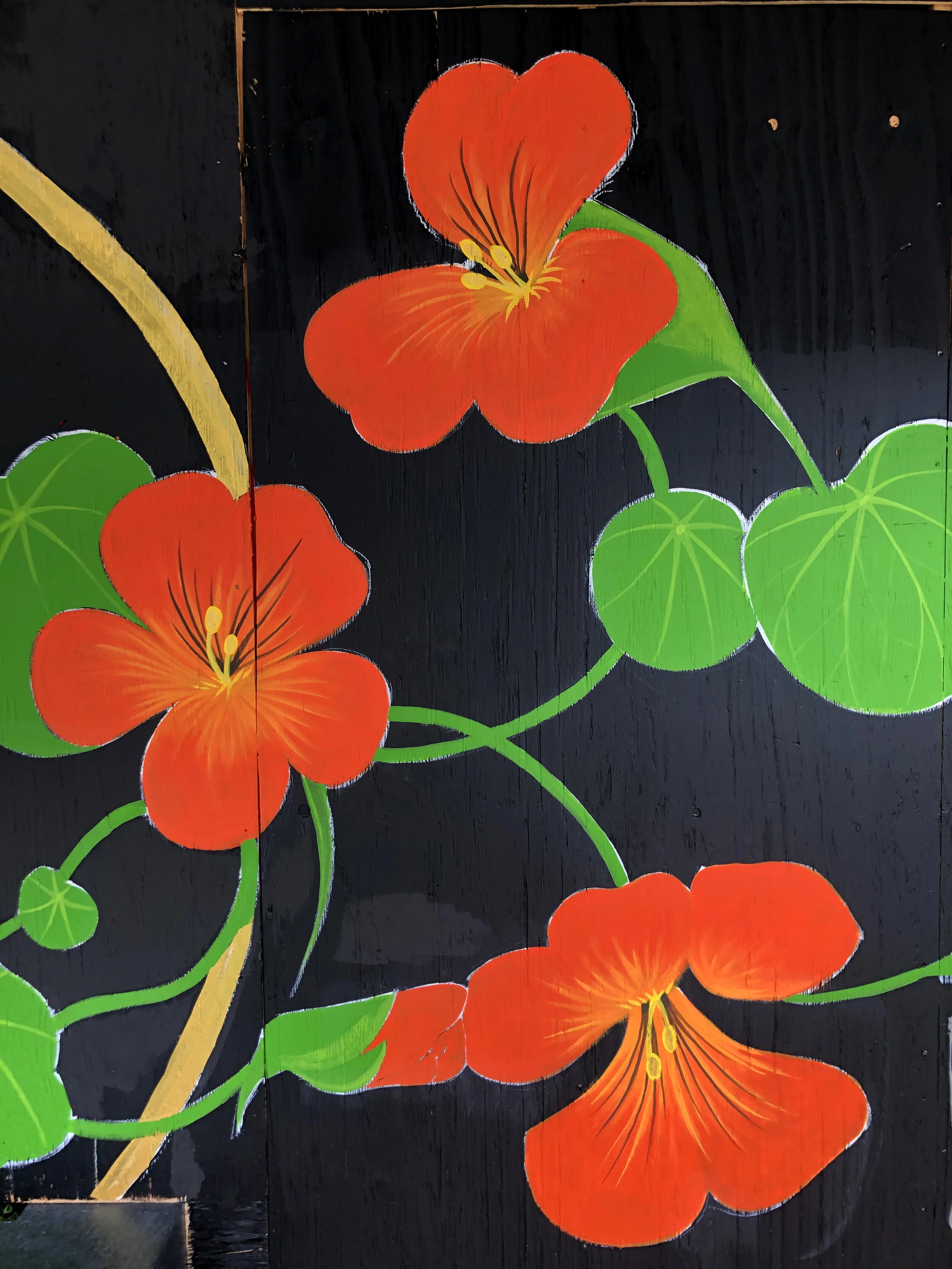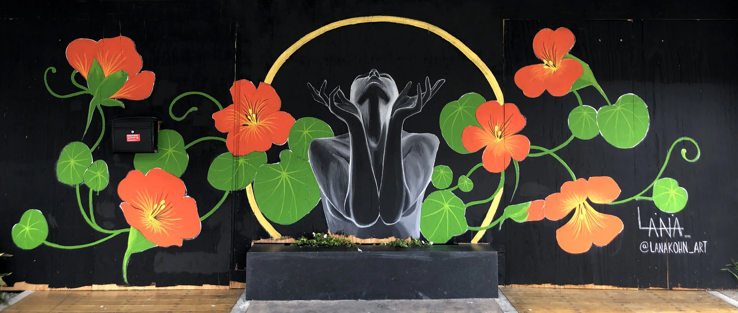 Outdoor mural located beneath the front doors of Hotel Zephyr located in Fisherman’s Wharf, San Francisco. Measures approximately 9’ x 22’.
